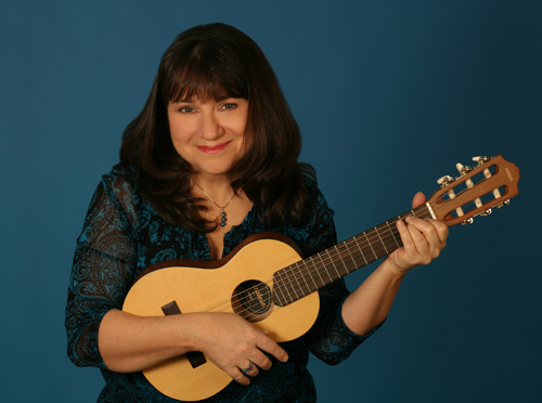 Color photo (jpeg) of Robin with guitalele (color, 127k): Good for family and children's shows: